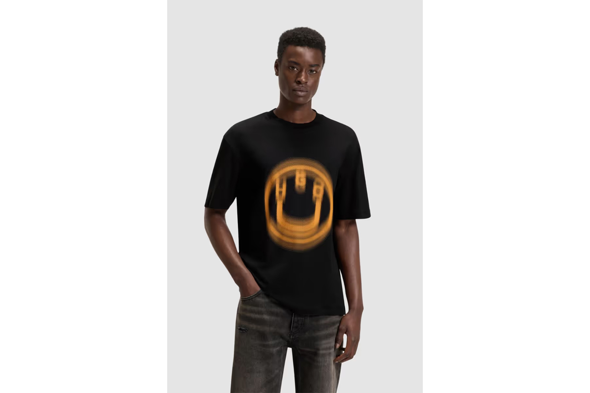 Ανανέωσε το στυλ σου με το Hugo Nalax With Blurred Logo Print ανδρικό κοντομάνικο T-Shirt σε μαύρο και μουσταρδί χρώμα, ένα κομμάτι που ξεχωρίζει για τον μοντέρνο χαρακτήρα και τη διακριτική κομψότητά του.