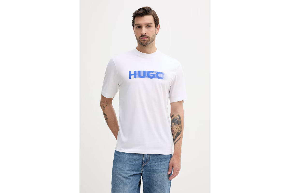 Με κανονική γραμμή και rib στρογγυλή λαιμόκοψη, το Hugo μπλουζάκι προσφέρει άψογη εφαρμογή και κλασικό στυλ που μπορείς να συνδυάσεις εύκολα με τζιν, παντελόνια ή ακόμα και αθλητικά looks.