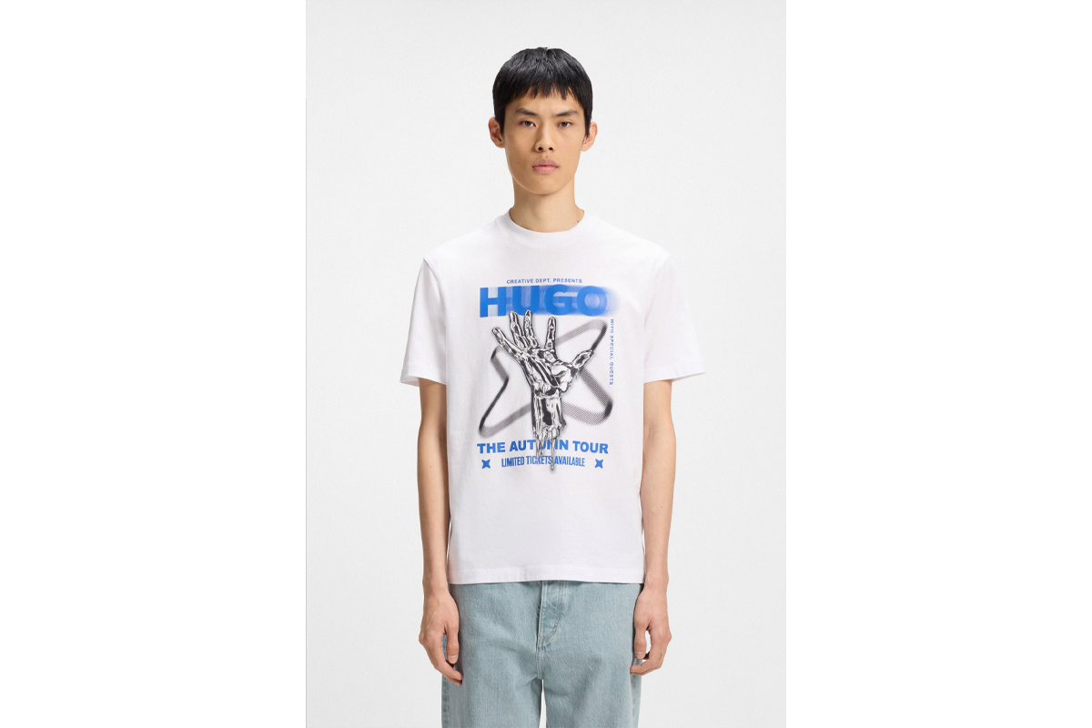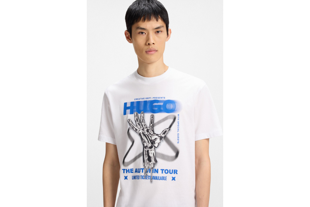 Δώσε μια καλλιτεχνική και μοντέρνα πινελιά στο καθημερινό σου στυλ με το Hugo Nopix Music Inspired ανδρικό κοντομάνικο T-Shirt σε λευκό, μαύρο και ρουά χρώμα.