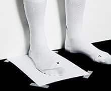 | Στάσου σε ίσια στάση σε μια σκληρή επιφάνεια, με τη φτέρνα κολλημένη στον τοίχο και ένα κομμάτι λευκού χαρτιού κολλημένο στο δάπεδο κάτω από το πόδι σου (η μια άκρη του χαρτιού πρέπει να ξεκινάει από τον τοίχο). |