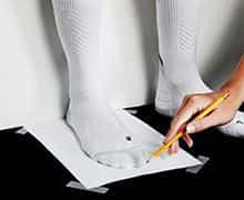 Φόρα το είδος της κάλτσας που θα φοράς με αυτά τα παπούτσια και μέτρησε το πόδι σου το απόγευμα (το πόδι συνήθως πρήζεται κατά τη διάρκεια της ημέρας). Πριν ξεκινήσεις τη μέτρηση, φρόντισε να κατανείμεις το βάρος σου ομοιόμορφα στα πόδια.