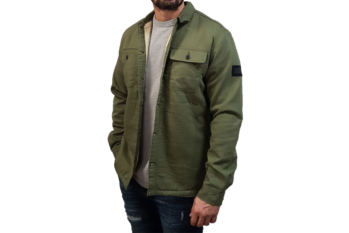 Ανδρικό overshirt της εταιρίας Jack & Jones σε χακί χρώμα με μακρύ μανίκι.