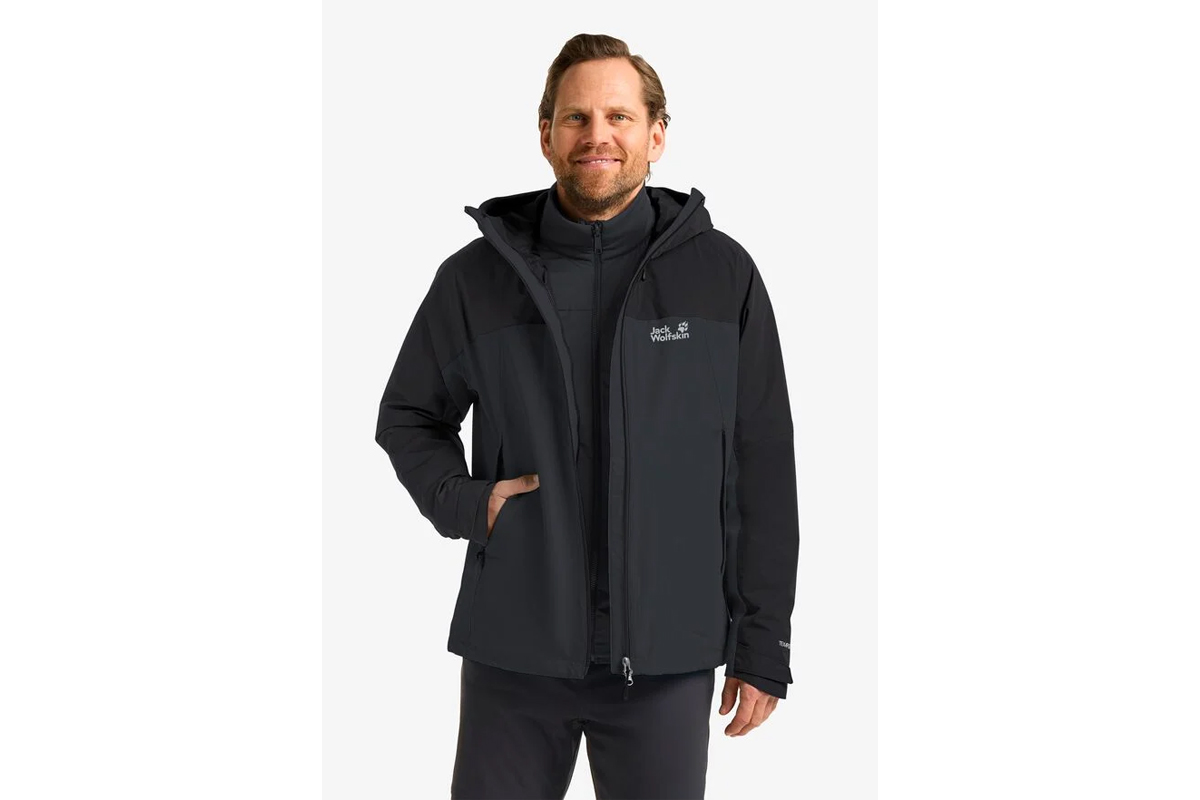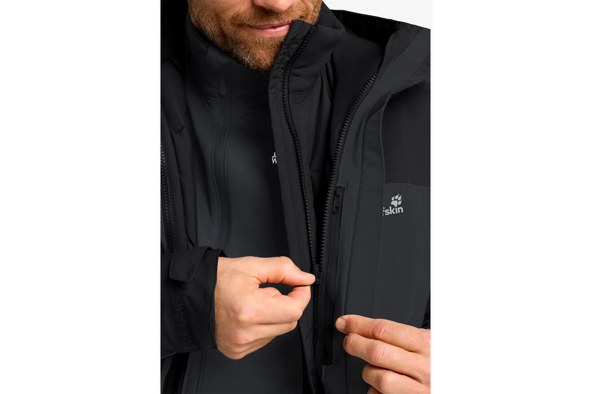Jack Wolfskin Wild Places 3-In-1 Ανδρικό Αδιάβροχο Μπουφάν με Κουκούλα Μαύρο, Ανθρακί
