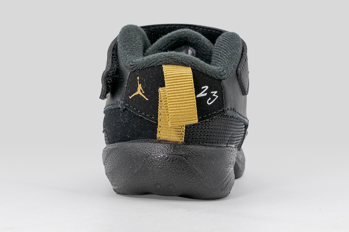 Οι κυματιστές γραμμές κοντά στα κορδόνια παραπέμπουν στο Air Jordan 10, ενώ οι αυλακώσεις στα πλαϊνά και οι λεπτομέρειες από γυαλιστερό δέρμα πατέντας τιμούν το Air Jordan 11, δημιουργώντας μια ξεχωριστή εμφάνιση με μπασκετική κληρονομιά.