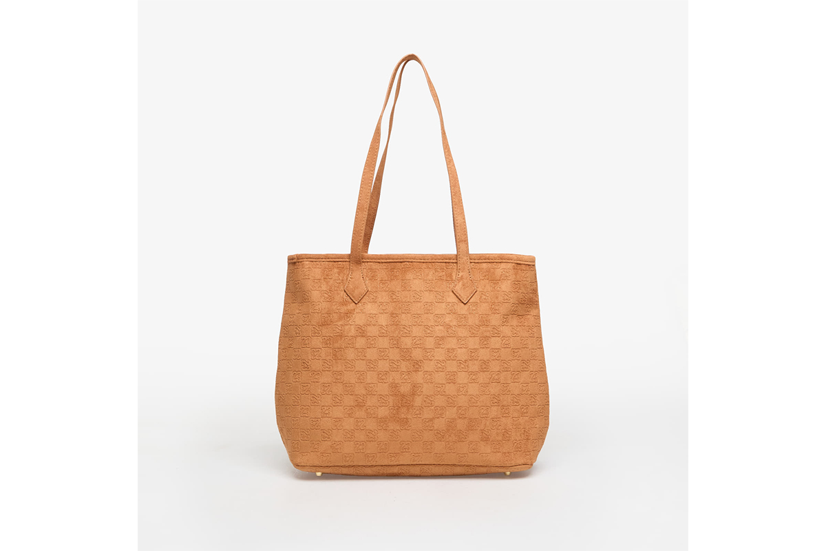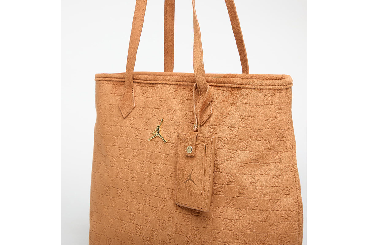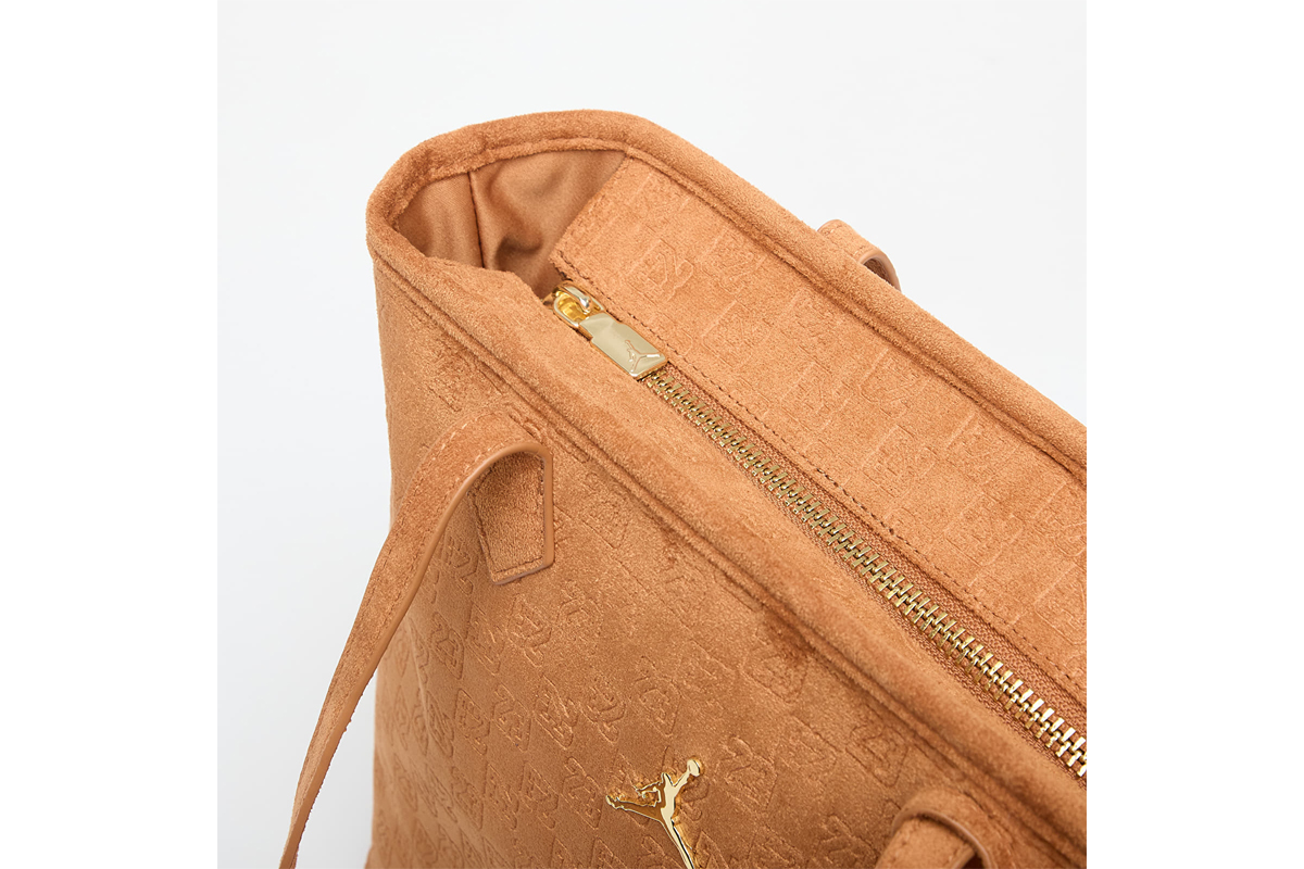 Αναβάθμισε το καθημερινό σου στυλ και ταξίδεψε με ευκολία με τη Jordan Suede Monogram γυναικεία τσάντα tote σε κάμελ χρώμα.