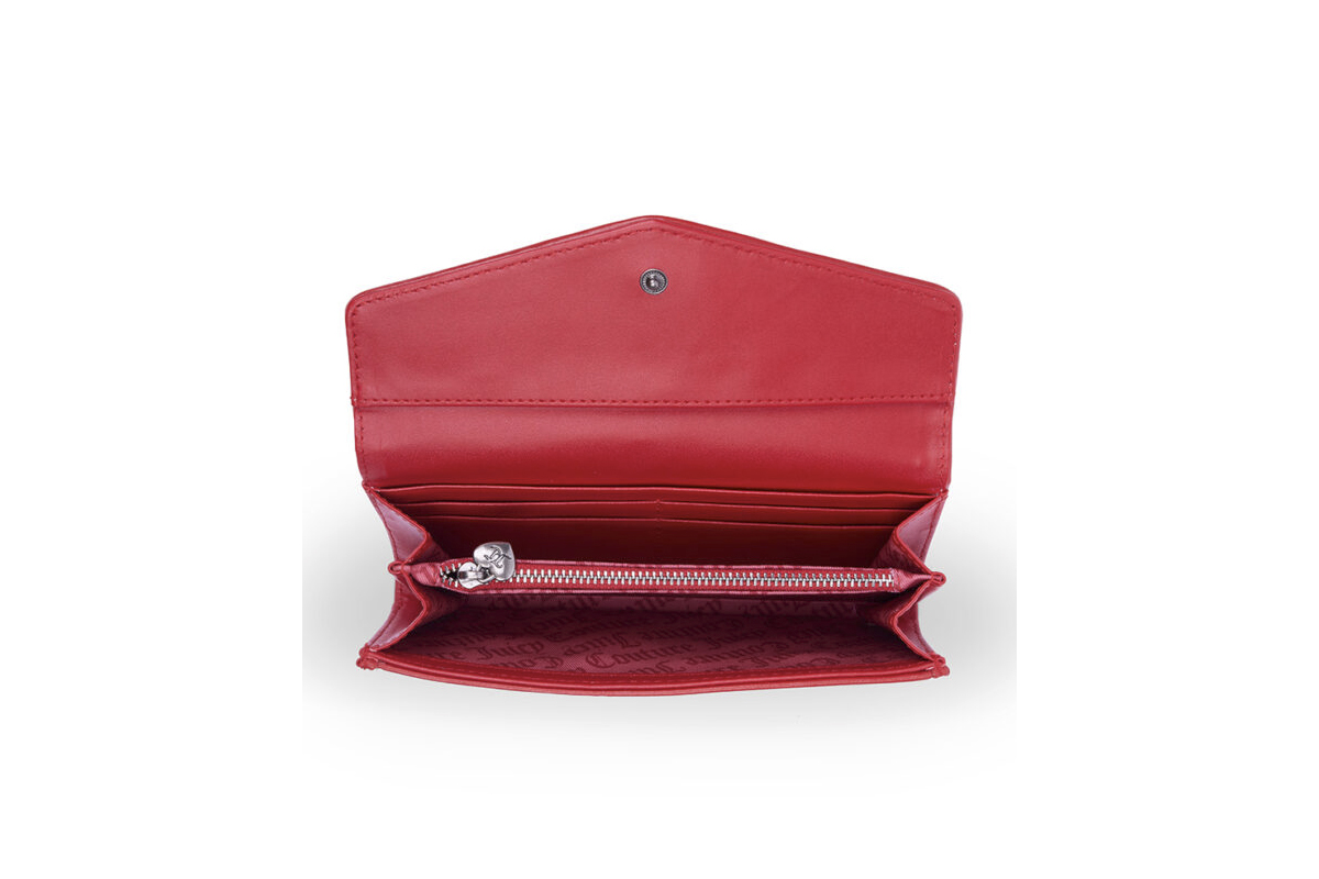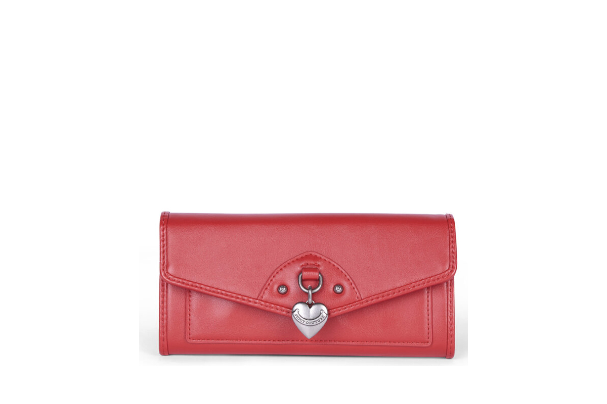 Ανακάλυψε το Juicy Couture Bridget Large Flap γυναικείο πορτοφόλι σε κόκκινο χρώμα με ασημί λεπτομέρειες για άνεση και στυλ.