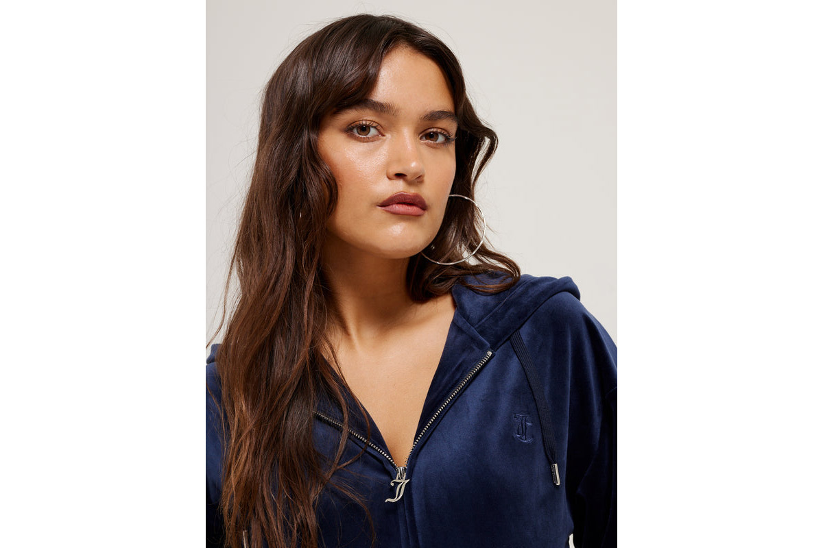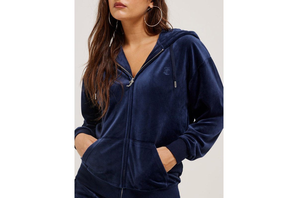 Η Juicy Couture Halan γυναικεία ζακέτα βελουτέ με κουκούλα σε μπλε σκούρο χρώμα θα αναβαθμίσει τις casual εμφανίσεις σου.