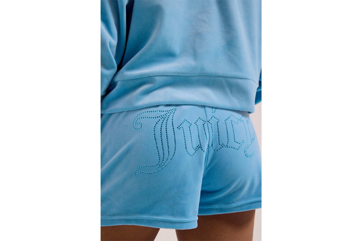 Juicy Couture Tamia Velour Outline Diamante Γυναικείο Αθλητικό Σορτς Γαλάζιο