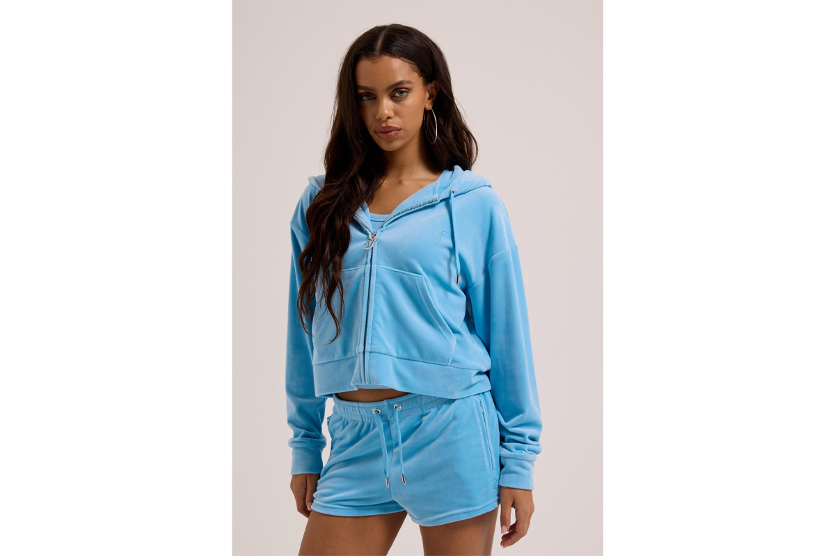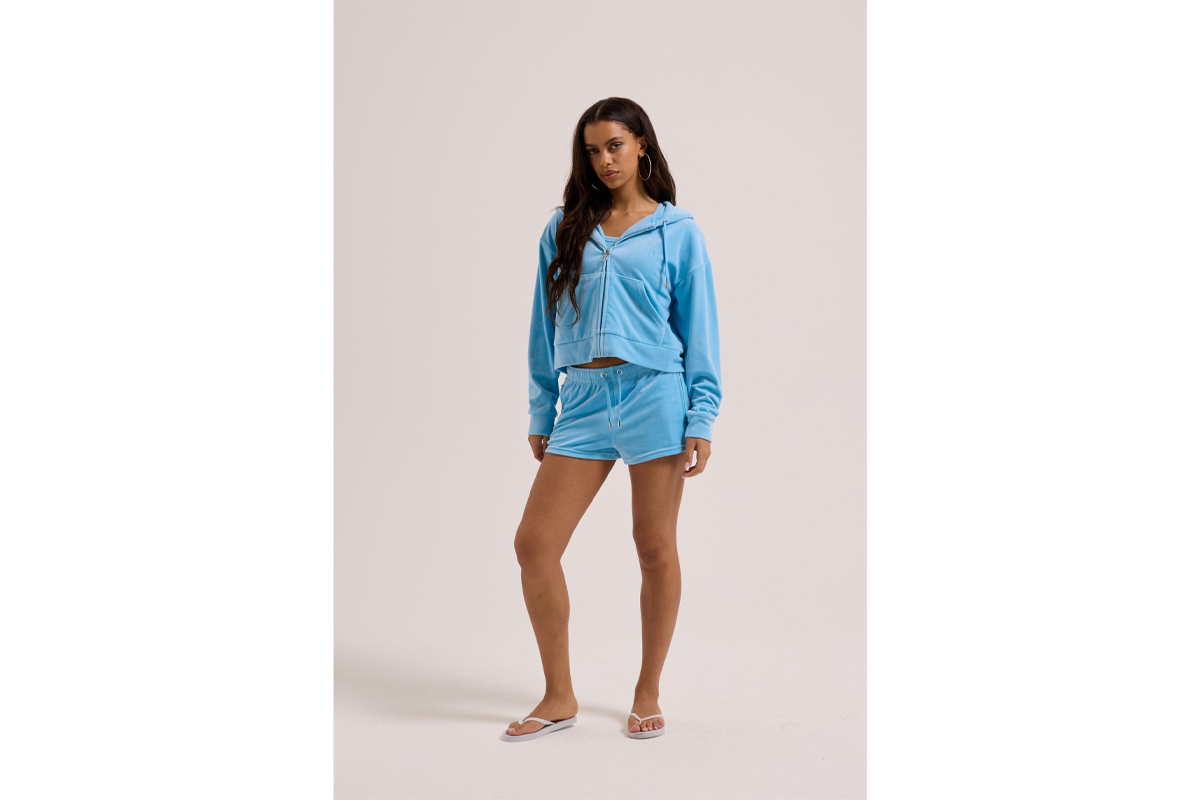 Πρόσθεσε στη γκαρνταρόμπα σου το Juicy Couture Tamia Velour Outline Diamante γυναικείο αθλητικό σορτς σε γαλάζιο χρώμα, ένα κομμάτι που ξεχωρίζει χάρη στη βελούδινη υφή του.