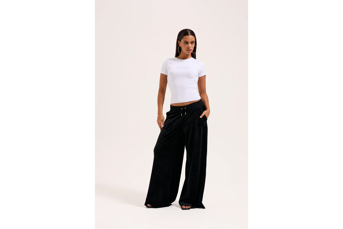 NEW IN! Juicy Couture Wide Leg Classic Velour Παντελόνι Φόρμας Γυναικείο (JCBBJ225803 101)