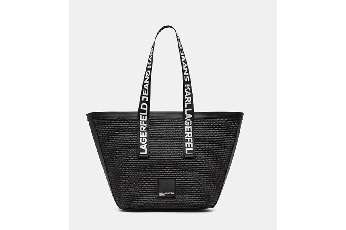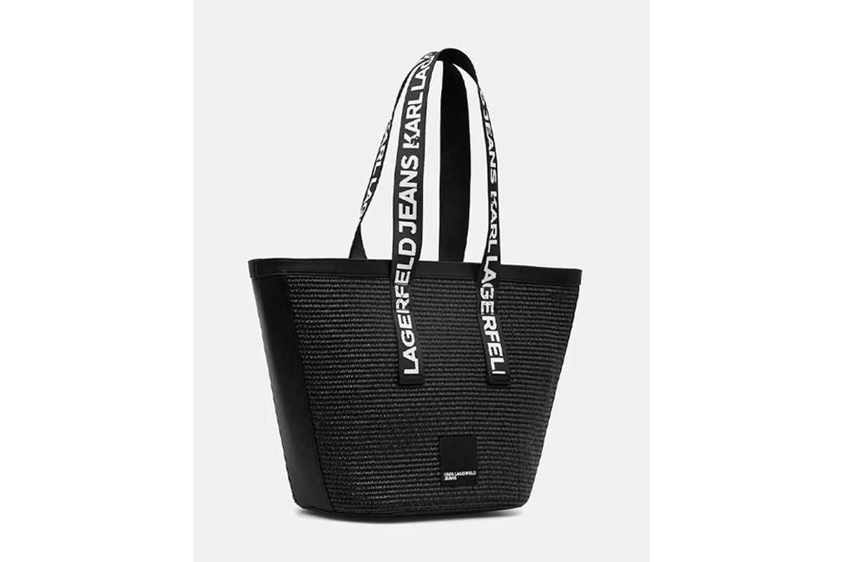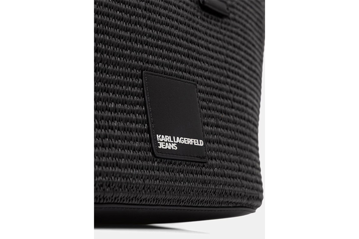 Η woven raffia υφή της χαρίζει ξεχωριστό χαρακτήρα, ενώ το λογότυπο Karl Lagerfeld προσθέτει premium αισθητική και fashion υπογραφή.