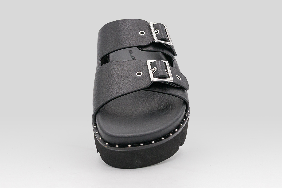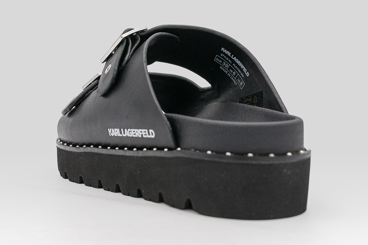 Ανάδειξε το δυναμικό σου στυλ με τα Karl Lagerfeld Kaia Double Buckle γυναικεία σανδάλια σε μαύρο χρώμα, ένα fashion-forward κομμάτι που συνδυάζει ροκ αισθητική και καθημερινή άνεση.
