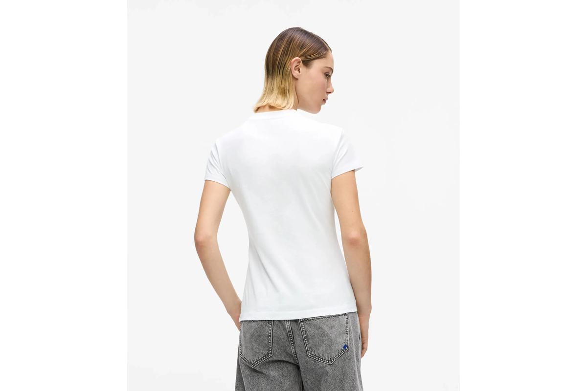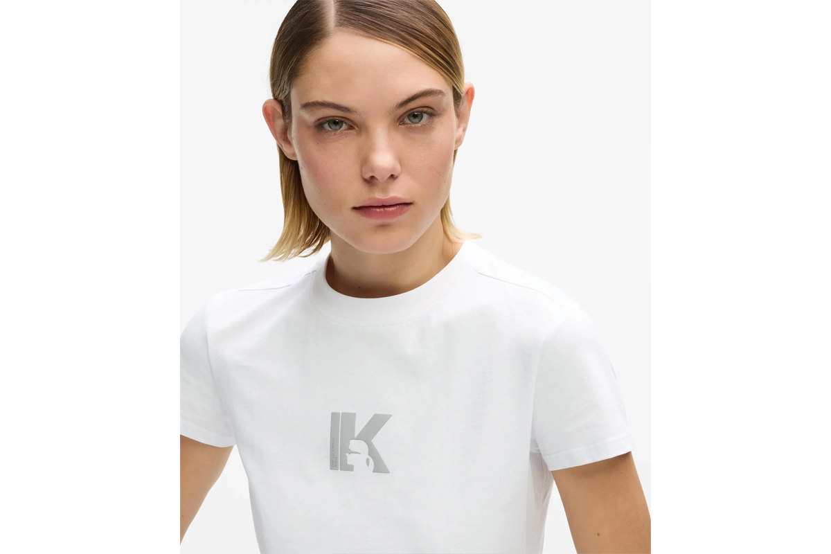 Το Karl Lagerfeld Slim K logo γυναικείο κοντομάνικο T-Shirt σε λευκό χρώμα αποτελεί μια κομψή επιλογή για καθημερινές εμφανίσεις που συνδυάζουν minimal σχεδιασμό και ποιοτικά υλικά.