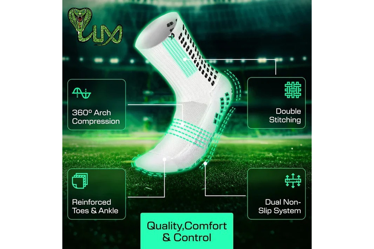 Πρόσθεσε στη συλλογή σου τις Lux Sports Soccer Grip ποδοσφαιρικές κάλτσες σε λευκό και μαύρο χρώμα για μέγιστη σταθερότητα και υποστήριξη.
