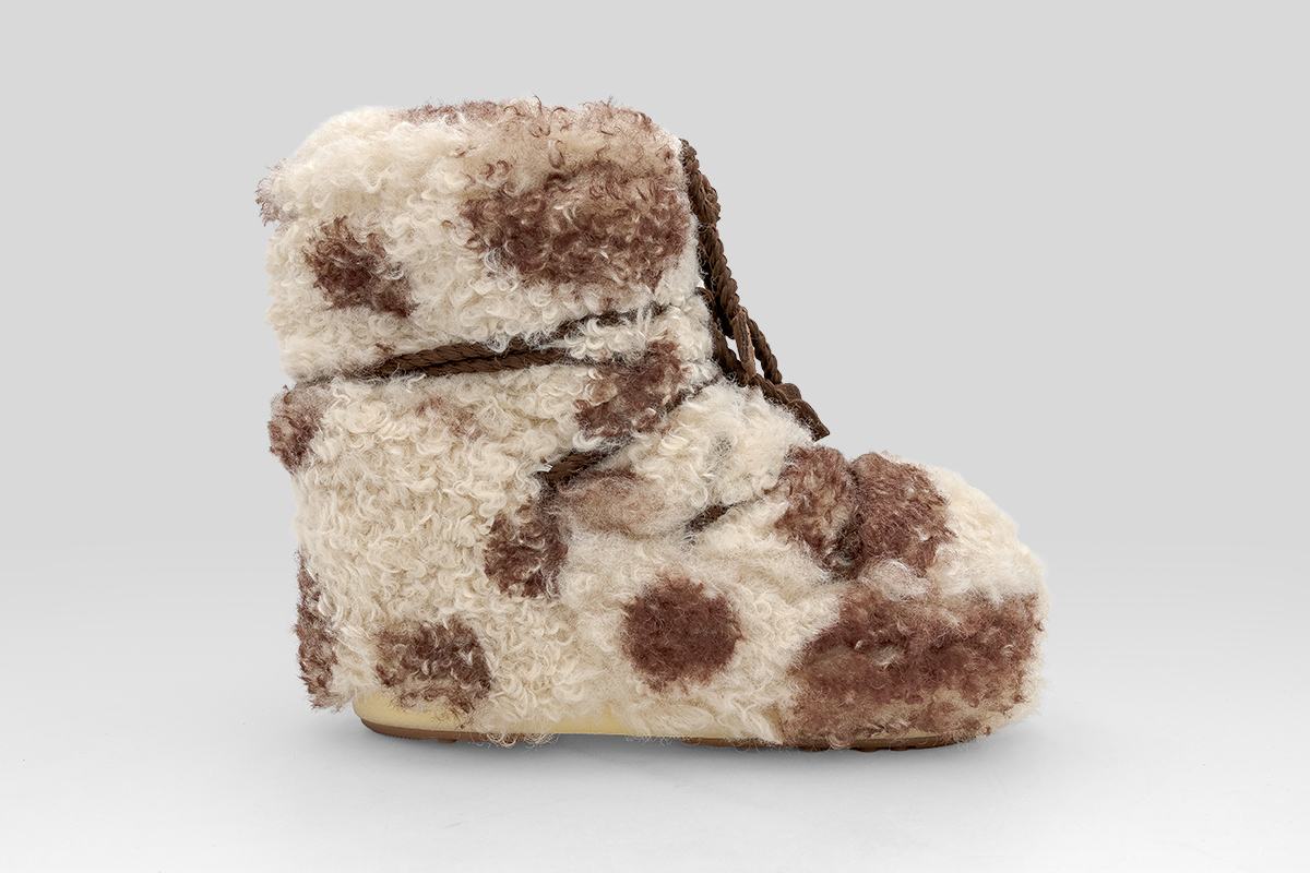 NEW IN! Moon Boot Icon Cow Print Low Curly Μπότες Χιονιού Καφέ, Μπεζ