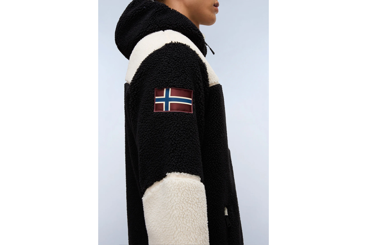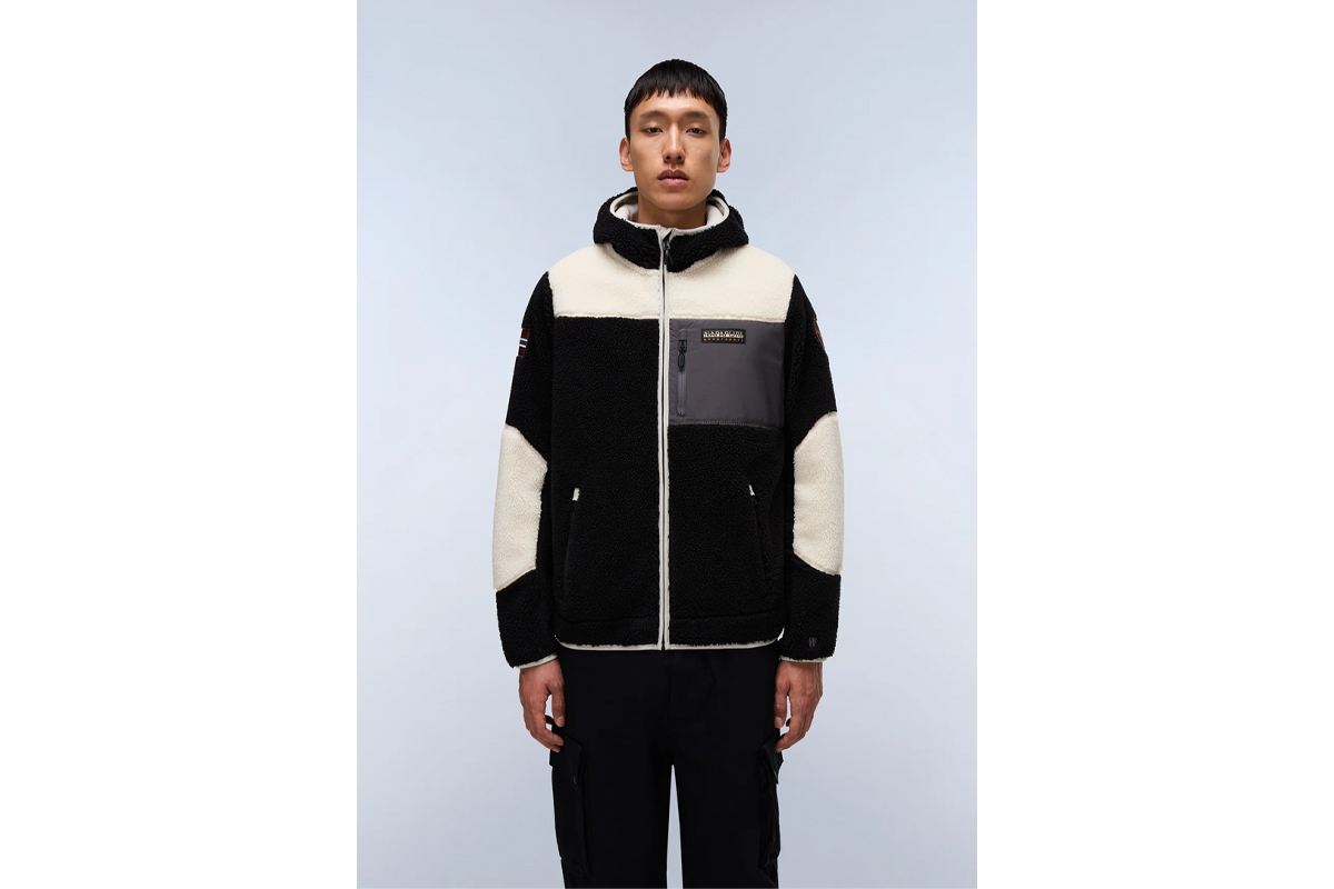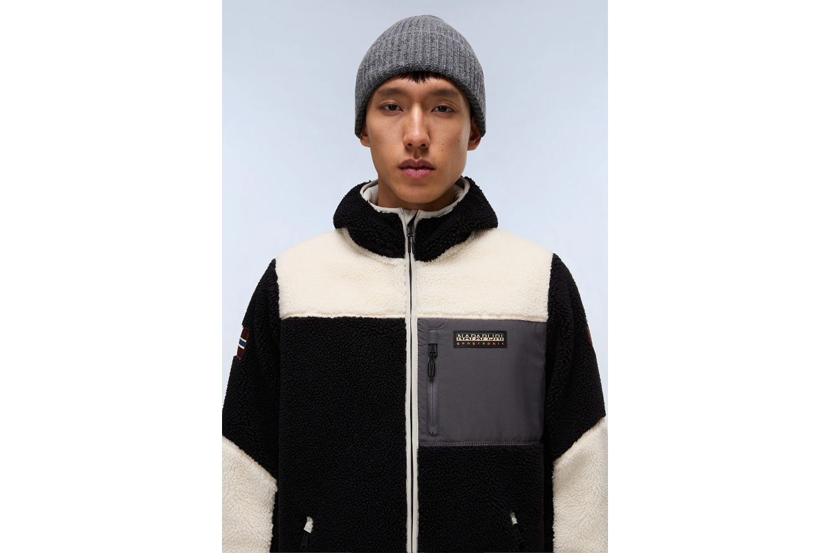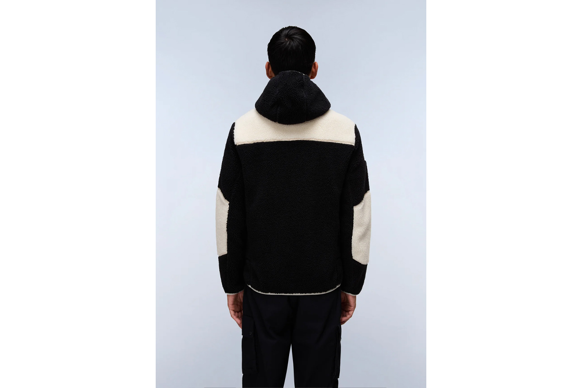 Napapijri Yupik Ανδρική Ζακέτα Fleece με Κουκούλα Μαύρη, Εκρού, Γκρι Σκούρο