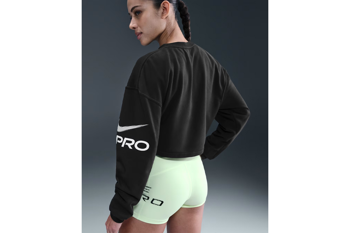 Αναβάθμισε το αθλητικό σου στυλ με τη Nike Pro Dri-FIT French Terry γυναικεία μακρυμάνικη crop μπλούζα σε μαύρο χρώμα, ένα κομμάτι που συνδυάζει τεχνολογία απόδοσης και μοντέρνο design.