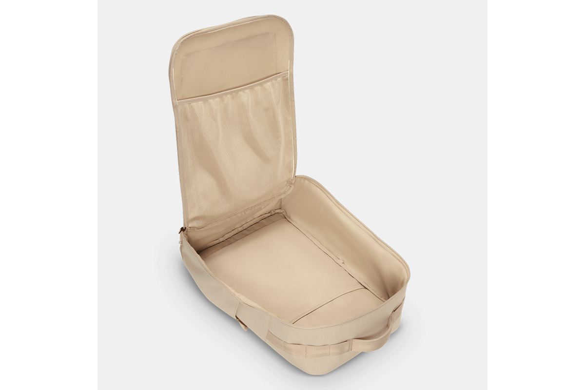 Το ευρύχωρο κύριο διαμέρισμα ανοίγει πλήρως τύπου βαλίτσας και χωράει ένα ζευγάρι παπούτσια, μια αλλαξιά ρούχων και διαθέτει ειδικές θήκες για λάπτοπ έως 16 ιντσών και μικρά ηλεκτρονικά.