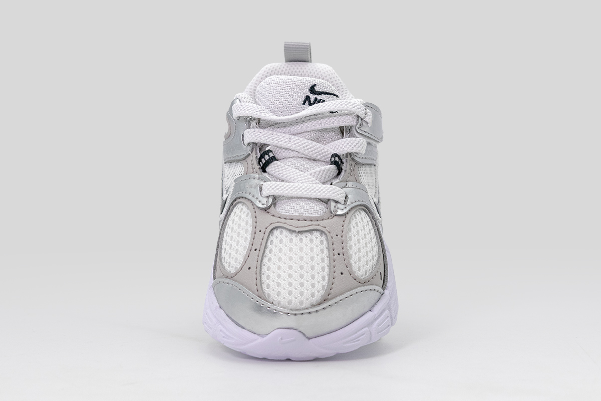 Χάρισε στο μικρό σου άνεση και στυλ με τα Nike V5 RNR βρεφικά sneakers σε λευκό, ασημί και γκρι χρώμα, ένα μοντέρνο και πρακτικό παπούτσι ειδικά σχεδιασμένο για τα πρώτα του βήματα.