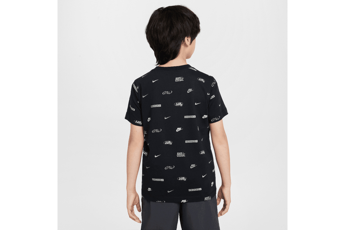 Αναβάθμισε το καθημερινό ντύσιμο του παιδιού σου με το Nike AOP παιδικό T-Shirt σε μαύρο χρώμα.
