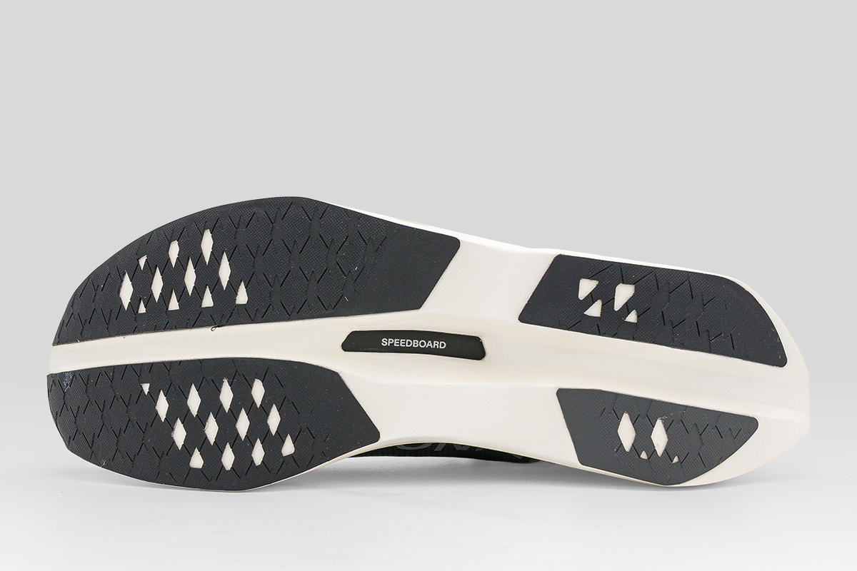 Η Carbon Speedboard® πλάκα από ανθρακονήματα μετατρέπει την ενέργεια του βήματός σου σε ισχυρή ώθηση προς τα εμπρός, ενώ το βελτιωμένο rocker και toe-off συμβάλλουν σε πιο γρήγορη και φυσική κύλιση του ποδιού.