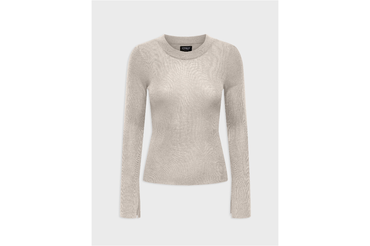 NEW IN! Only Tara Rib Γυναικεία Μακρυμάνικη Μπλούζα με Λαιμόκοψη Μπεζ