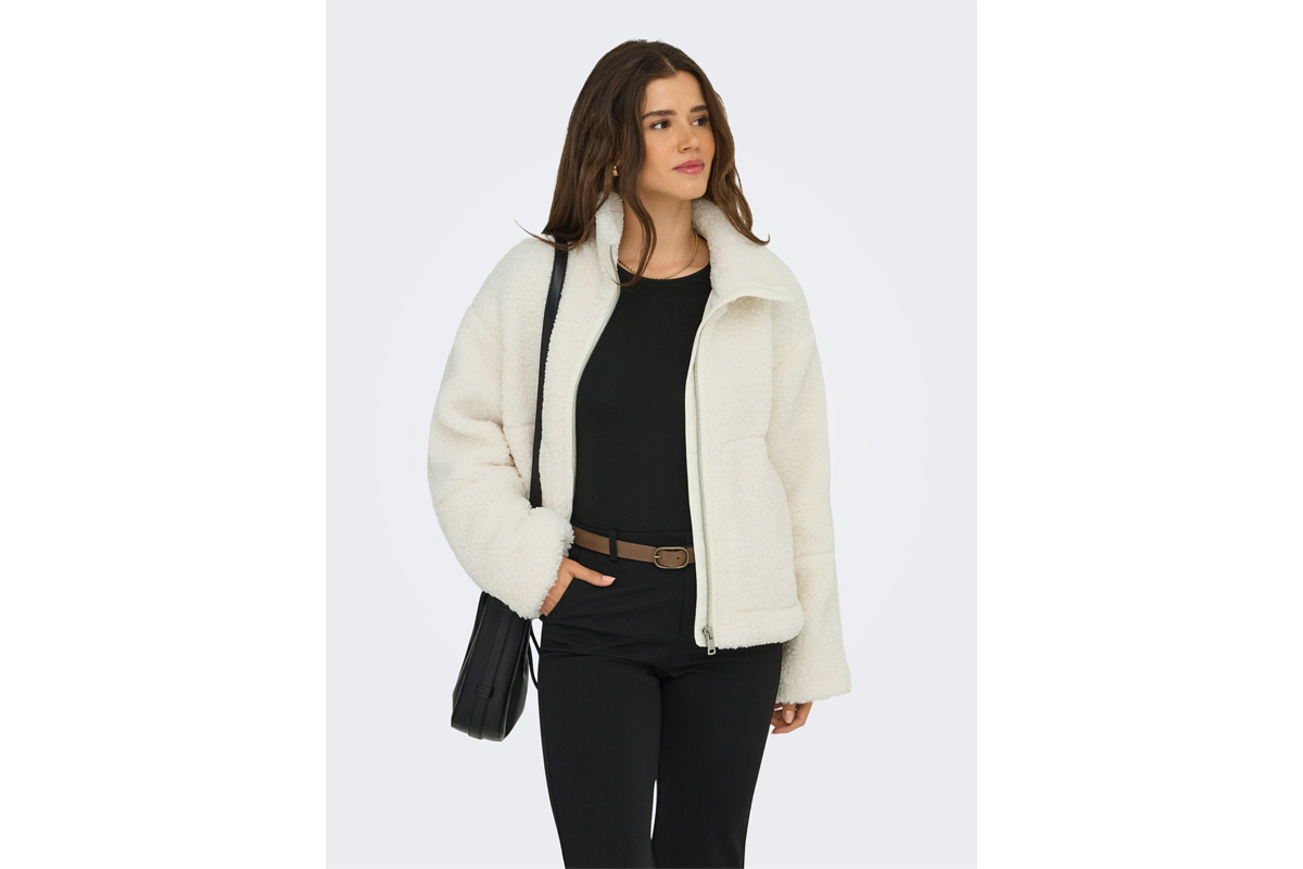 Ανέβασε το στυλ και τη ζεστασιά σου τους χειμερινούς μήνες με το Only Onlaspen γυναικείο μπουφάν sherpa σε εκρού χρώμα.