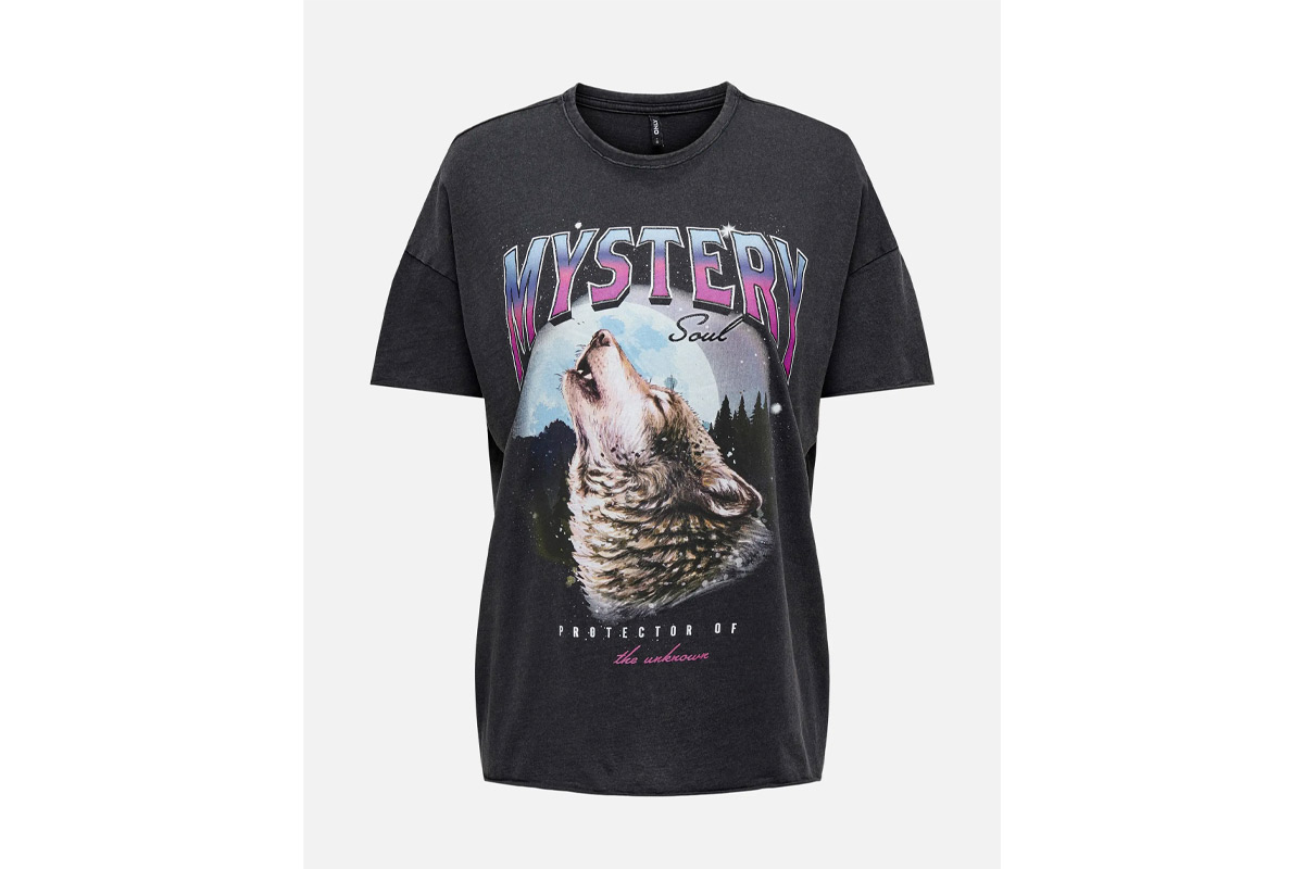 Only Onllucy Oversize S-S Wolf Top Box Jrs T-Shirt Γυναικείο (15289145 BLACK-MYSTERY)