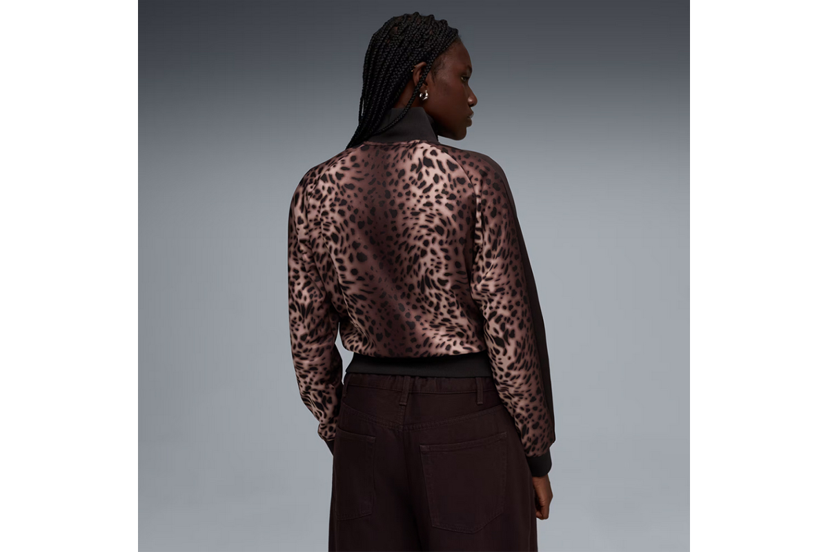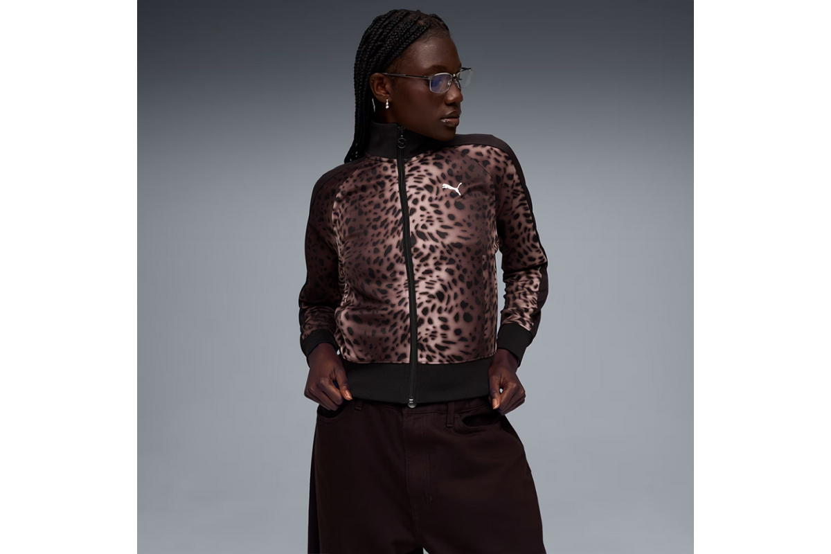Το leopard print δίνει δυναμικό χαρακτήρα στο κλασικό design, ενώ τα στενά πλαϊνά panels και τα signature T7 inserts στα μανίκια ενισχύουν την iconic γραμμή της Puma.