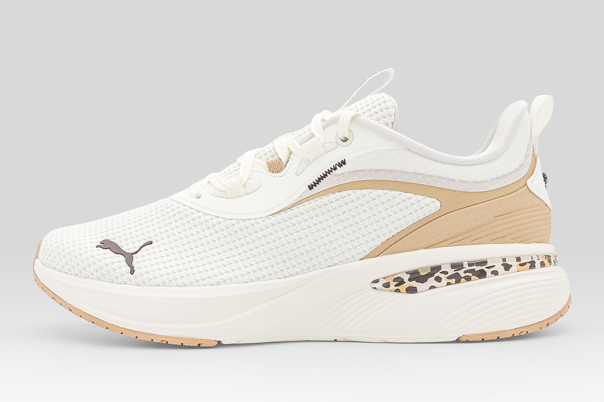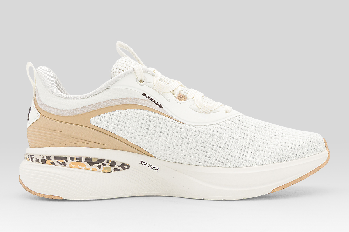 Ζήσε άνετα και στυλάτα κάθε σου βήμα με τα Puma Softride Charm Animal sneakers σε λευκό και ταμπά χρώμα.