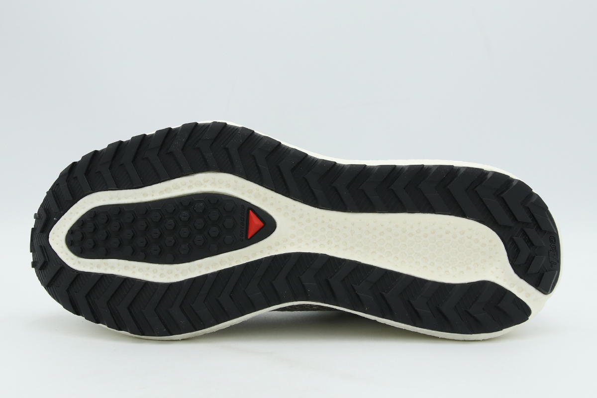 Η εξωτερική σόλα, εμπνευσμένη από ελαστικά mountain bike, προσφέρει εξαιρετική πρόσφυση και ομαλή μετάβαση ανάμεσα σε διαφορετικά terrains, ενώ οι V-shaped προεξοχές εξασφαλίζουν πολυκατευθυντικό κράτημα ακόμα και σε πιο μαλακές επιφάνειες.