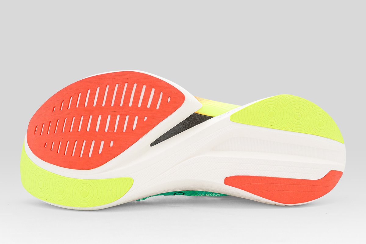 Η πλάκα ανθρακονημάτων πλήρους μήκους με ειδικές εγκοπές ενισχύει την εκρηκτικότητα στο toe-off, καθιστώντας το μία από τις πιο επιθετικές επιλογές για race day.