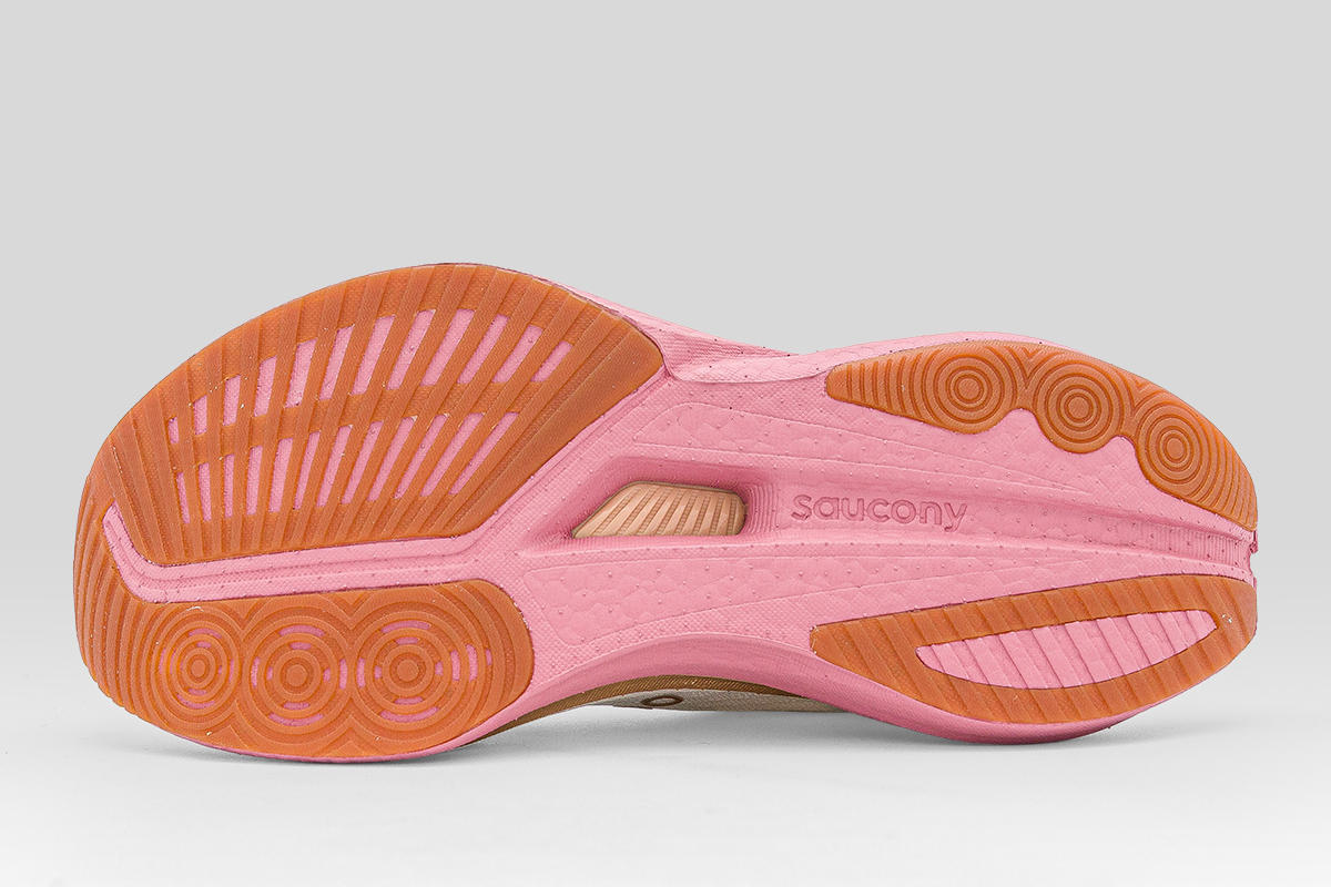 Η αυξημένη κάλυψη καουτσούκ στη φτέρνα και στις άκρες ενισχύει την ανθεκτικότητα, ενώ η αυλάκωση σε όλο το μήκος συμβάλλει σε πιο ομαλή και φυσική μετάβαση.