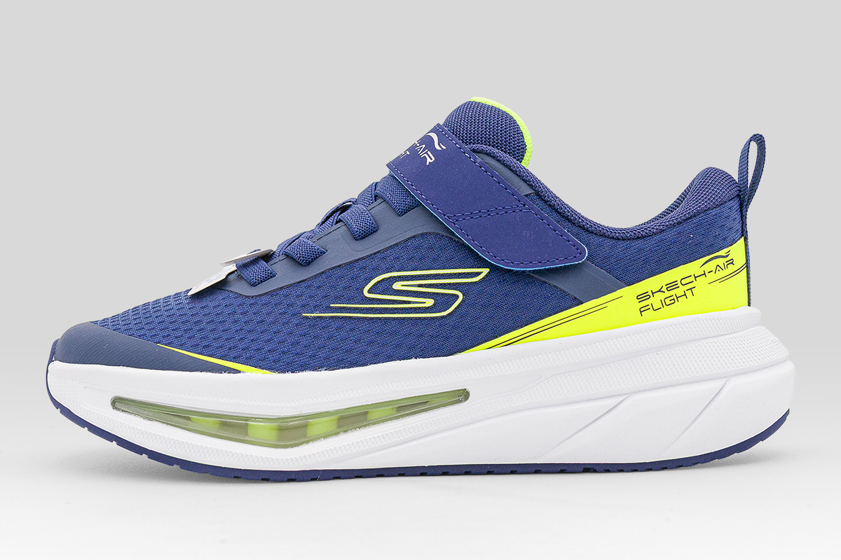 Τα Skechers Air Flight παιδικά sneakers σε μπλε, λευκό και κίτρινο φλούο χρώμα χαρίζουν στο παιδί σου σπορ στιλ και ενισχυμένη αντικραδασμική προστασία για ατελείωτο παιχνίδι.