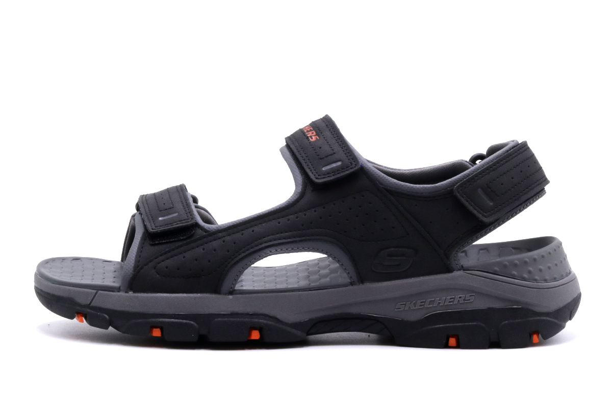 Ταξιδέψτε όλη μέρα με άνεση μεγάλης διάρκειας με το σανδάλι Skechers Tresmen - Garo. Αυτό το σανδάλι διαθέτει ανθεκτικό συνθετικό επάνω μέρος με μαλακό πάτο από αφρό Luxe και κλείσιμο με velcro.