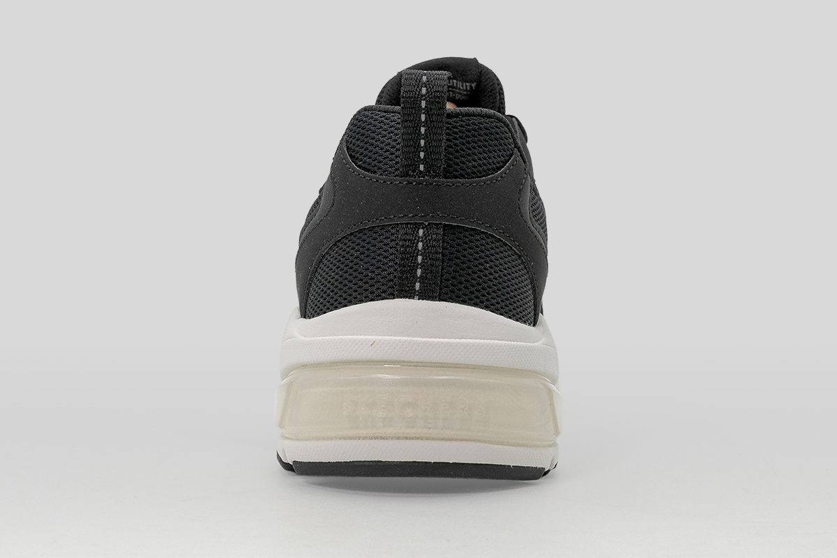 Το ημιδιαφανές ένθετο στην ενδιάμεση σόλα δίνει μια μοναδική αισθητική πινελιά, ενώ ο προστατευμένος εσωτερικός πάτος Skechers Air-Cooled Memory Foam® εξασφαλίζει αντικραδασμική προστασία και προσαρμοσμένη άνεση σε κάθε βήμα.