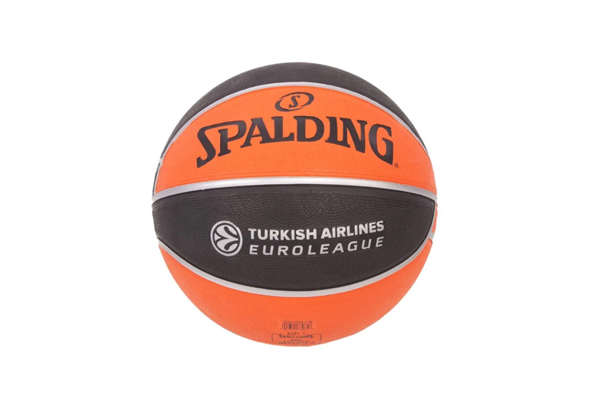 Το ανάγλυφο περίβλημα εξασφαλίζει σταθερό κράτημα, ενώ τα λογότυπα Spalding και Euroleague στο μπροστινό μέρος δίνουν αυθεντική εμφάνιση, πιστοποιώντας την ποιότητα του brand.