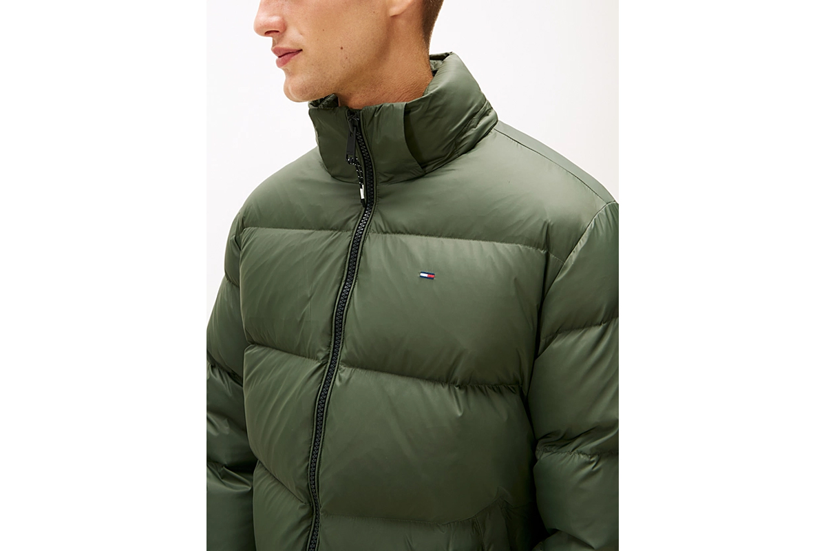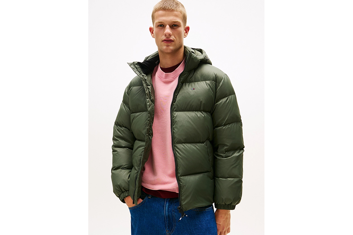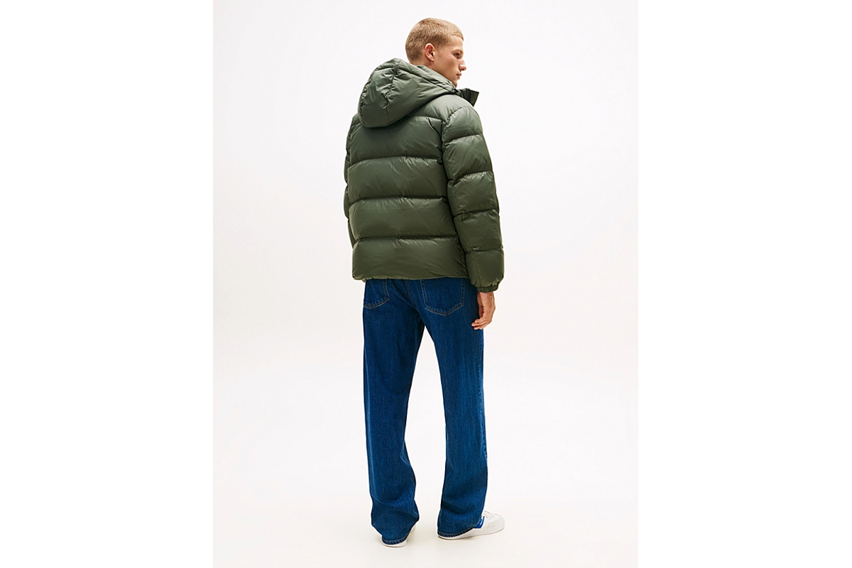 Με το Tommy Jeans Water Repellent Down Hooded ανδρικό Puffer μπουφάν με κουκούλα σε πράσινο χρώμα δημιουργείς μια στιβαρή προστασία απέναντι στις χαμηλές θερμοκρασίες και την υγρασία της καθημερινότητας.