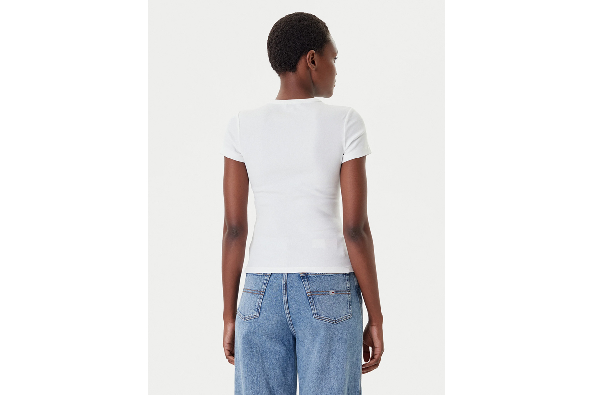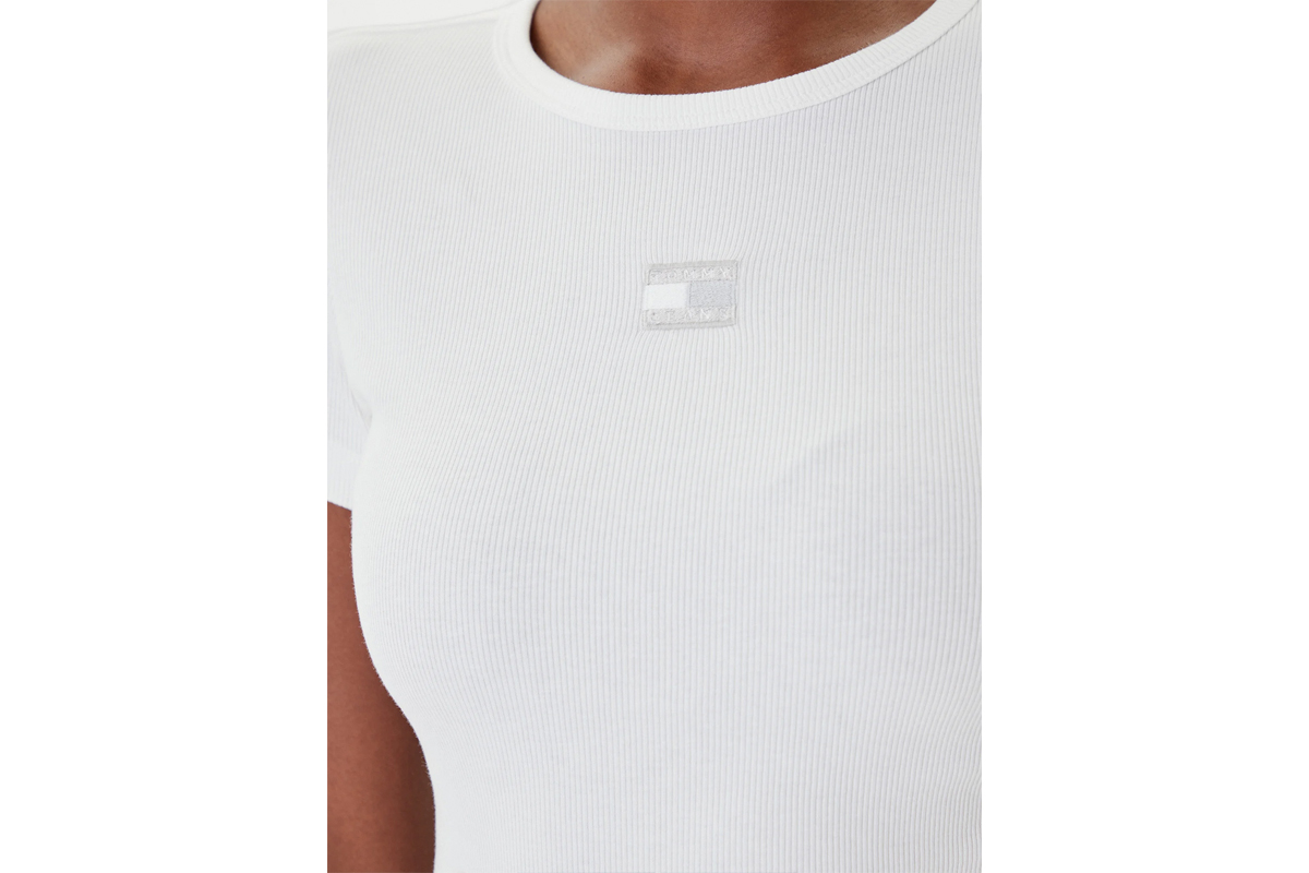 NEW IN! Tommy Jeans Badge Ribbed Slim Fit Γυναικείο Κοντομάνικο T-Shirt Λευκό