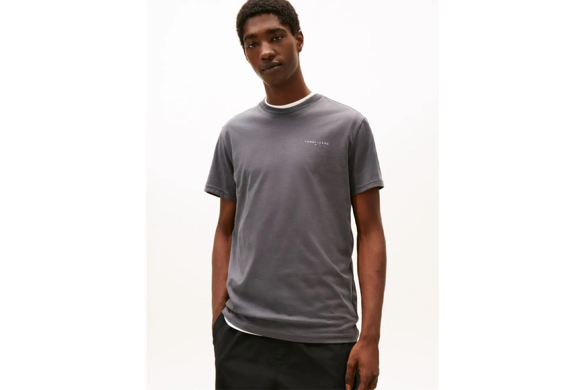 Ανανέωσε τη συλλογή σου με το Tommy Jeans Linear Logo ανδρικό κοντομάνικο T-Shirt σε γκρι σκούρο χρώμα, ένα κομμάτι που ξεχωρίζει για την απλότητα και την υψηλή ποιότητα κατασκευής του.