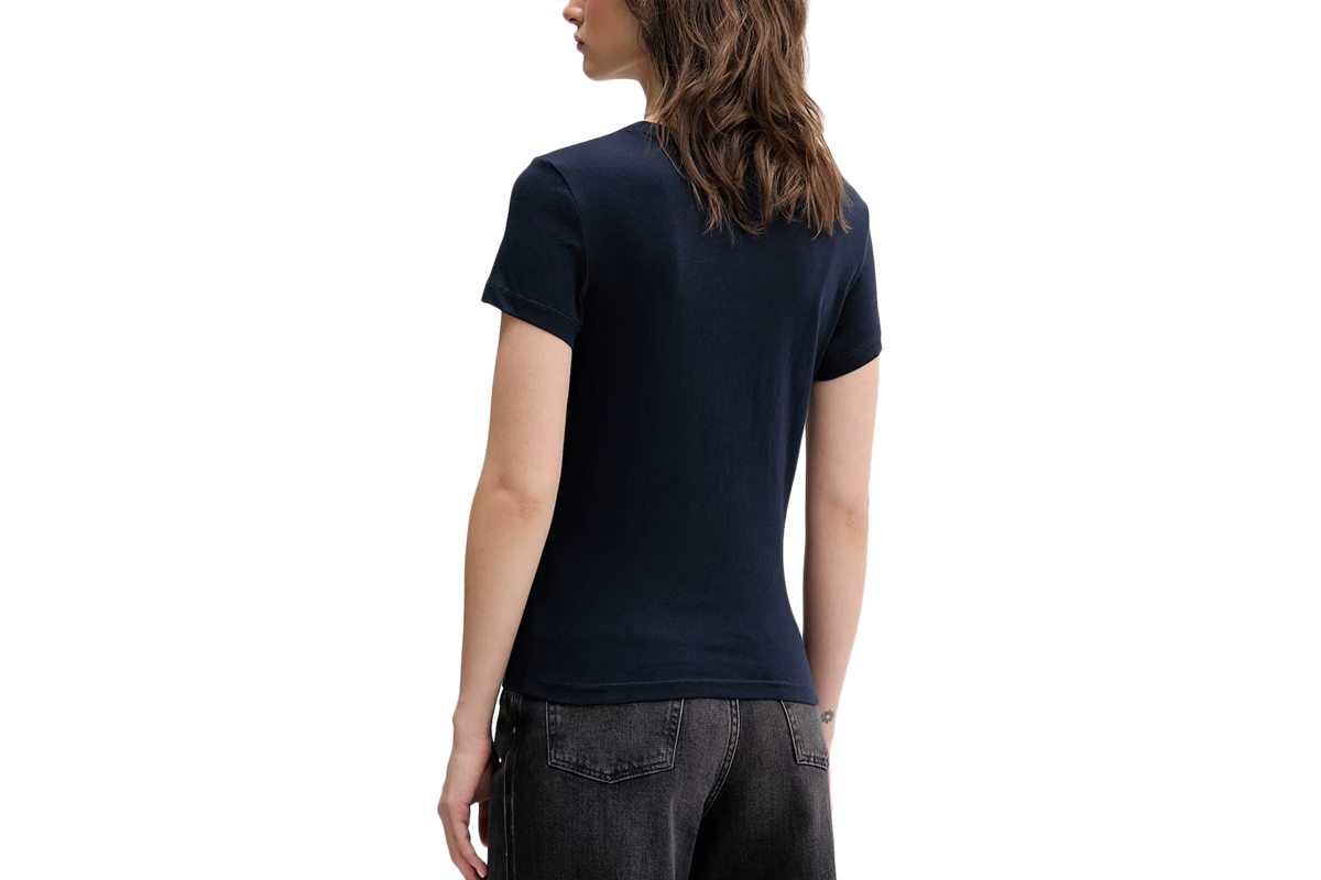 Η στενή εφαρμογή της μπλούζας αγκαλιάζει απαλά το σώμα σου, αναδεικνύοντας τη σιλουέτα, ενώ τα κοντά μανίκια κρατούν δροσερή την αίσθηση.