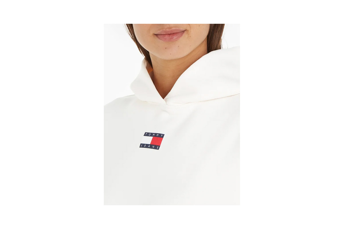 Γυναικεία μακριά μπλούζα με κουκούλα, από τη συλλογή Tommy Jeans, κατασκευασμένο απο ελαστικό πλεκτό. Μοντέλο από εξαιρετικά άνετο βαμβακερό υλικό..