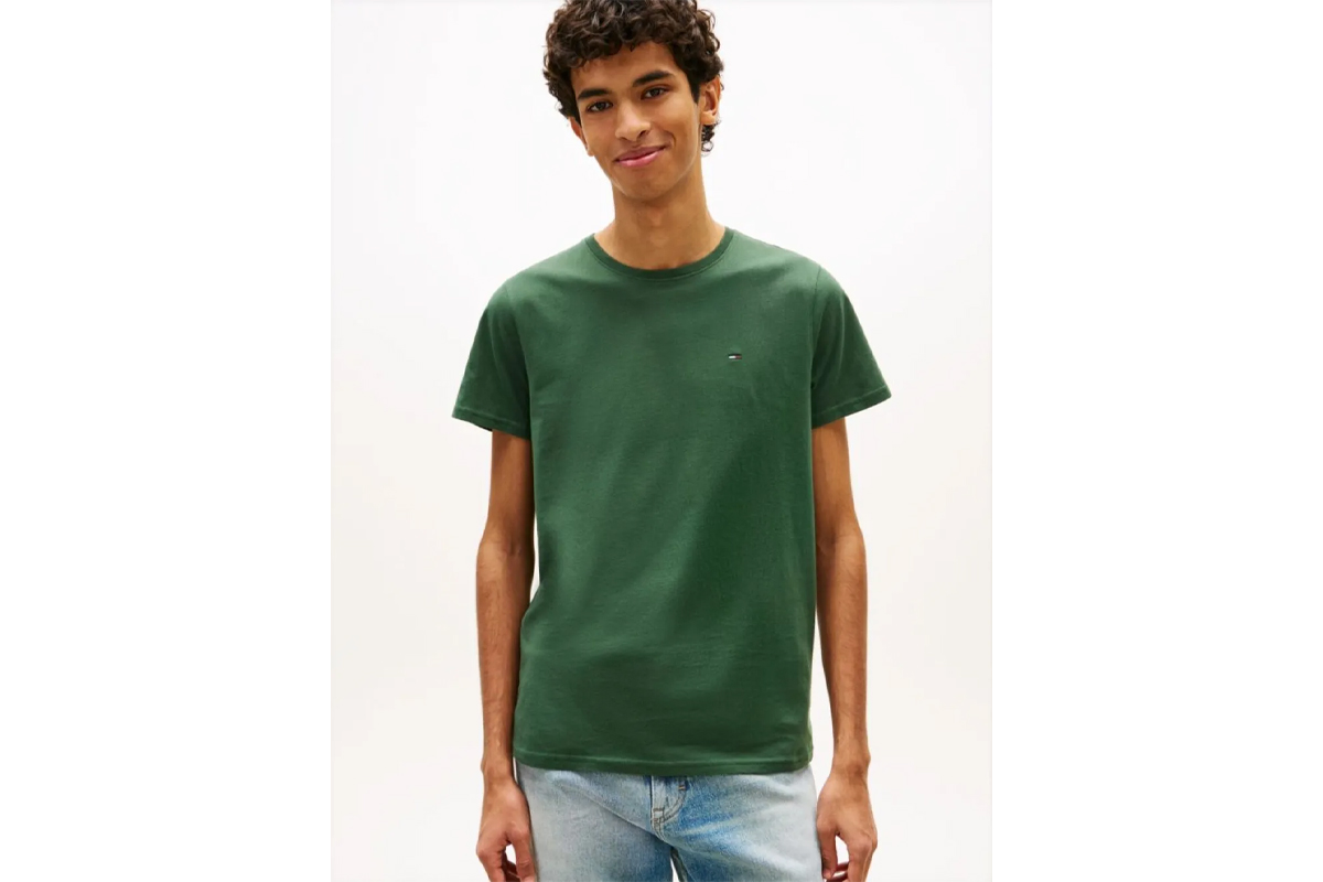 Αναβάθμισε το καθημερινό σου στυλ με το Tommy Jeans Extra Slim Jersey ανδρικό κοντομάνικο T-Shirt σε πράσινο χρώμα, ένα κομμάτι που συνδυάζει minimal αισθητική με κομψή εφαρμογή.