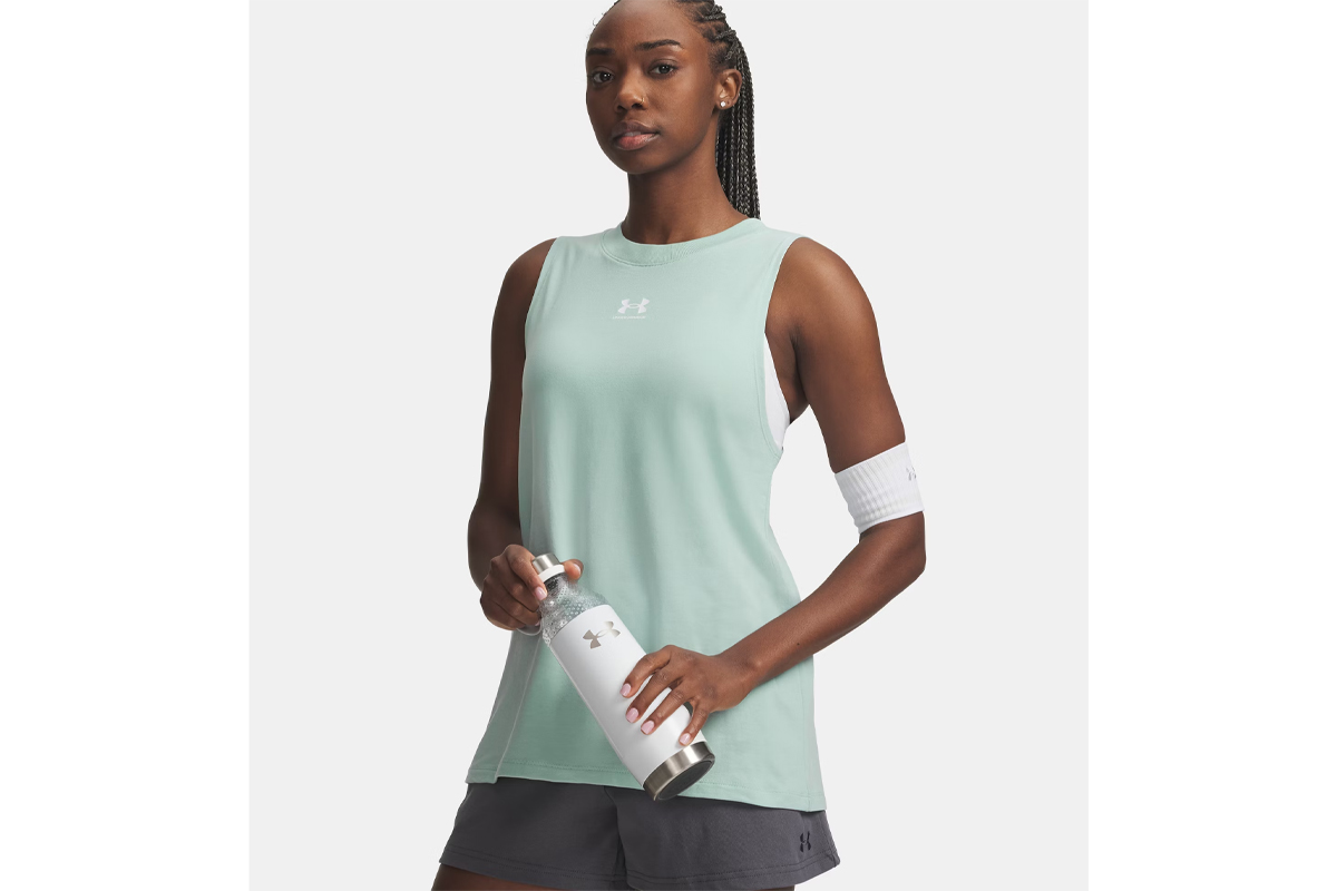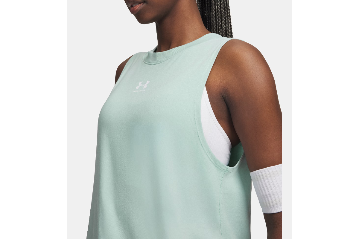 Η Under Armour Rival Muscle γυναικεία αμάνικη μπλούζα σε τυρκουάζ απόχρωση συνδυάζει άνεση, ελευθερία κινήσεων και μοντέρνο αθλητικό στυλ.