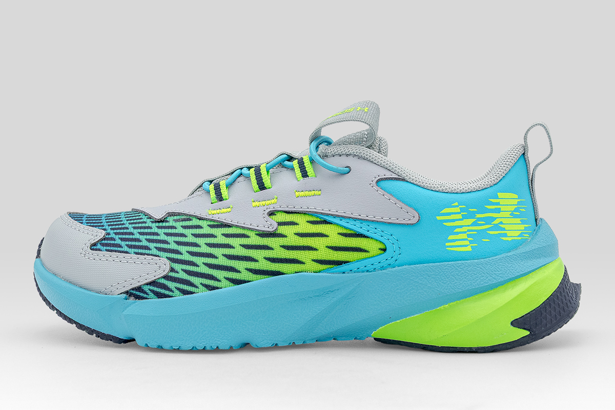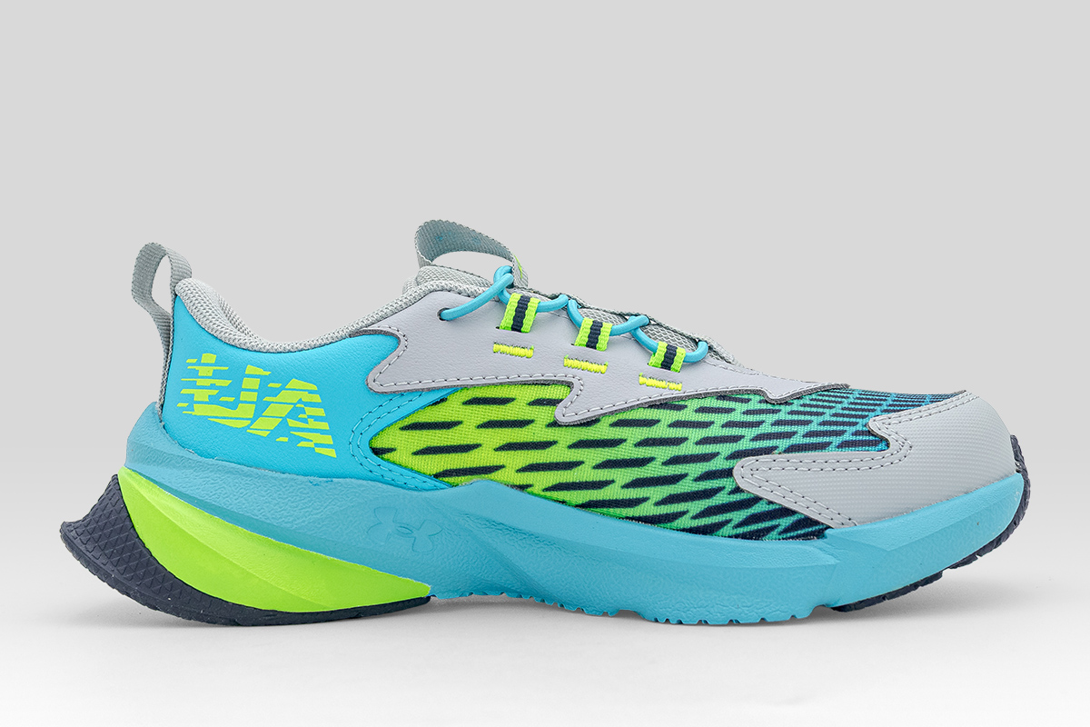 Δώσε στο παιδί σου την αίσθηση ταχύτητας και ενέργειας με τα Under Armour Scramjet 7 παιδικά αθλητικά παπούτσια για τρέξιμο σε γαλάζιο, γκρι και λαχανί χρώμα.