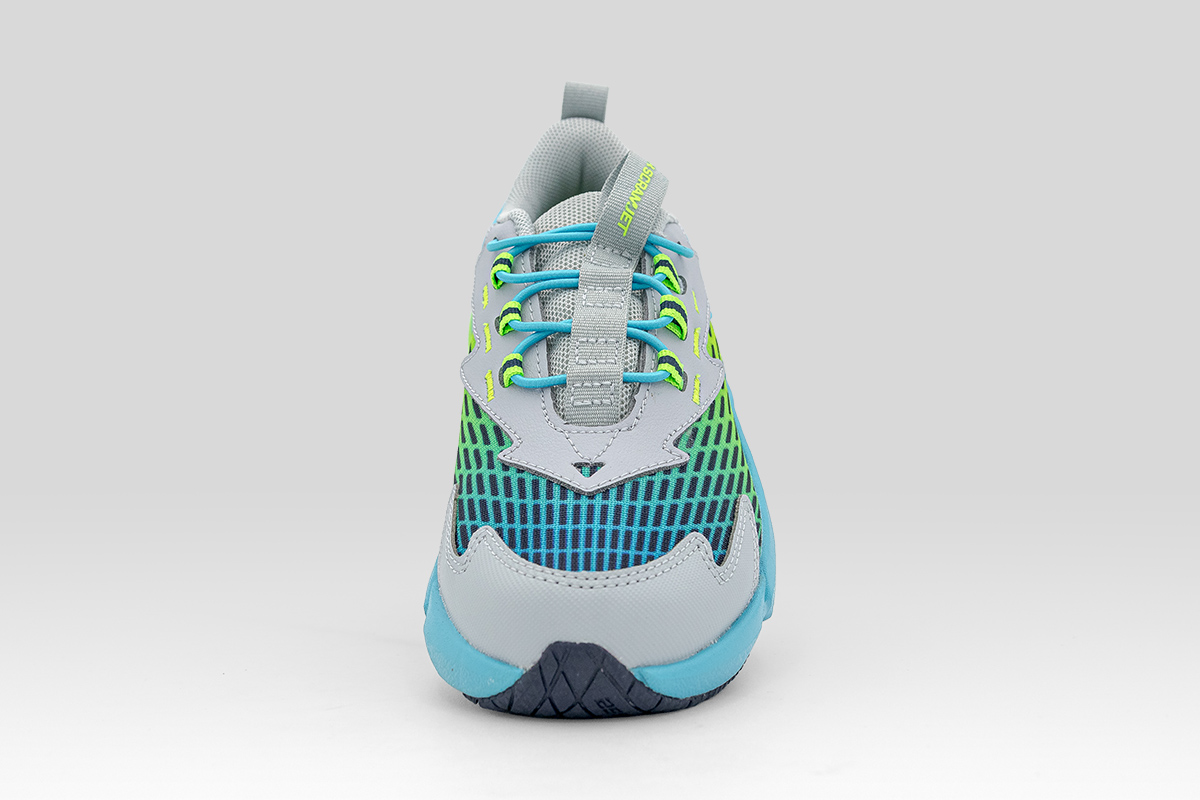 • Στρατηγικά τοποθετημένα ελαστικά μέρη στη φτέρνα και στο μπροστινό μέρος για μεγαλύτερη ανθεκτικότητα με χαμηλό βάρος