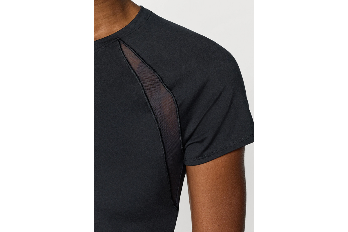 Τα πάνελ από power mesh προσφέρουν στοχευμένο αερισμό στα σημεία που τον χρειάζεσαι περισσότερο, ενώ τα μανίκια raglan με διακριτικές ραφές σε αντίθεση ενισχύουν τόσο την ελευθερία κινήσεων όσο και το αθλητικό, μοντέρνο look.