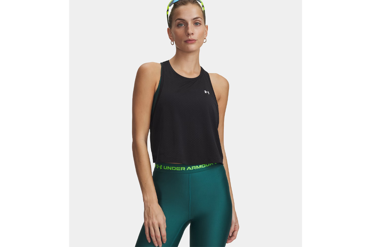 Under Armour Tech Sport Mesh Γυναικεία Αμάνικη Crop Μπλούζα Μαύρη
