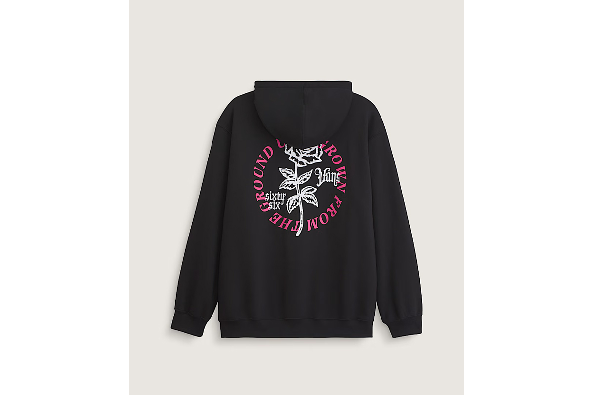 Η κλασική σιλουέτα πουλόβερ με μακριά μανίκια και κουκούλα με κορδόνι προσαρμογής σε κάνει να νιώθεις άνετα όλη μέρα, ενώ το εντυπωσιακό print με το λογότυπο Vans και ένα τριαντάφυλλο προσθέτει μια καλλιτεχνική, ξεχωριστή πινελιά στο στυλ σου.