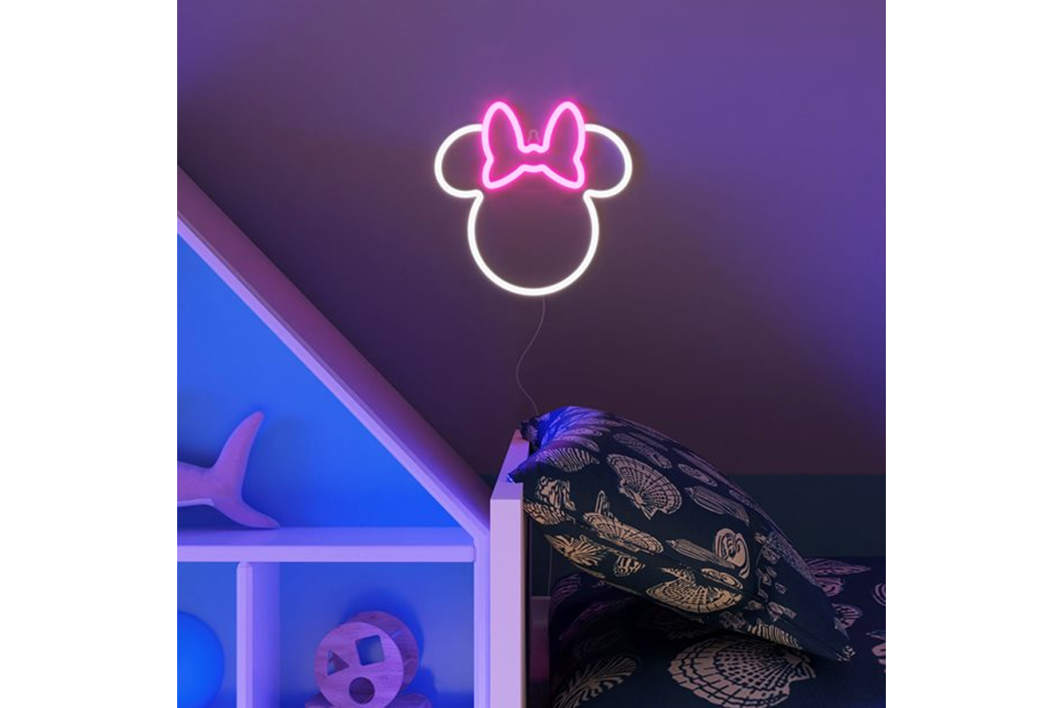 Το φωτιστικό νέον LED από την έκδοση Disney του Yellowpop φωτίζει το δωμάτιο και τη διάθεση ταυτόχρονα. Αυτό το εντυπωσιακό φως συνδυάζει μοντέρνα διακόσμηση τοίχων και πηγή φωτός σε ένα και αφήνει μεγάλους και μικρούς θαυμαστές της Disney σε αναμνήσεις από τις ταινίες. Το επιτοίχιο φωτιστικό Minnie διαθέτει ενεργειακά αποδοτικό σωλήνα νέον LED και ακρυλικό πάνελ. Χάρη στο ενσωματωμένο καλώδιο USB-A, η φωτιζόμενη εικόνα μπορεί εύκολα και άμεσα να συνδεθεί σε ένα τροφοδοτικό για παροχή ρεύματος. Ο φωτισμός LED Disney τοποθετείται γρήγορα και εύκολα με τη βοήθεια του ενσωματωμένου προσαρτήματος και δίνει αμέσως στο δωμάτιο μια νέα και παιχνιδιάρικη αίσθηση. Το τροφοδοτικό και το υλικό στερέωσης δεν περιλαμβάνονται.